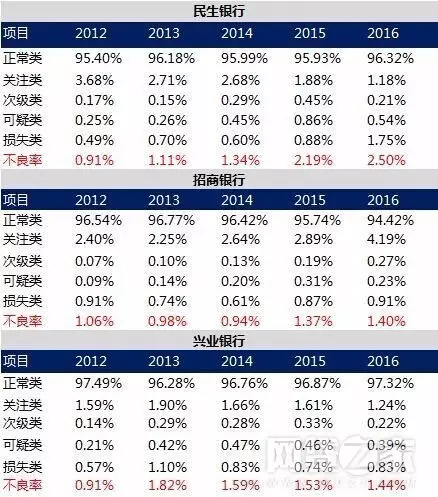 由于三家银行披露的数据类型雷同,我们在此仅展示民生银行的信用卡不良贷款特征。