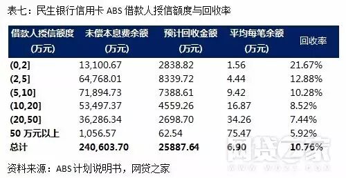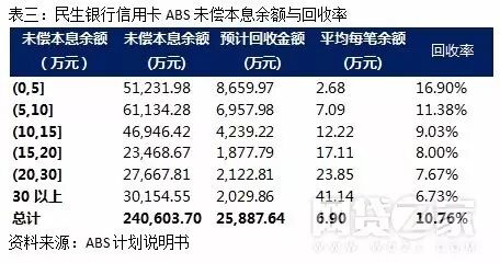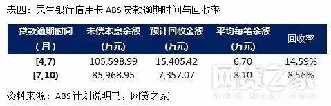事实上,民生银行信用卡不良贷款ABS的评级机构联合资信承认发生不良时本息费余额的大小显著影响不良贷款回收水平,发生不良时的本息费余额较小,则后期回收水平会较高,反之则较低。