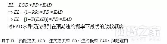 由于入池本息费用主要由本金和应缴利息构成,我们假设信用卡贷款的待收本息余额(风险敞口EAD)与回收率RR之间的关系可以用减函数RR=F(EAD)来表示,将这种函数关系代入贷款的预期损失计算公式: